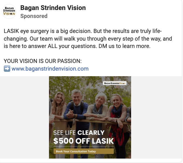 We developed and tested new creatives using various angles. This involved showcasing statistics related to vision in the US and introducing the expertise of the doctors to build trust.