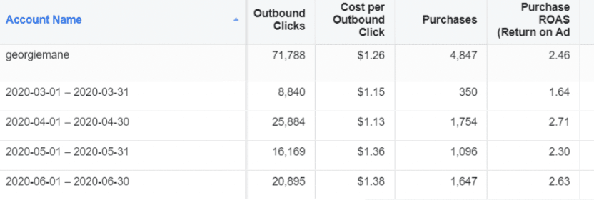 Within the first 30 days of working with Georgiemane, we implemented our proven frameworks to drive a significant uplift in return on investment from their Facebook advertising campaigns.